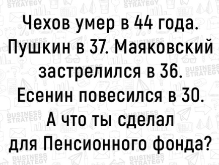 . Мол, не поддерживает ни один вид реформы, все они туфта, но надо было какую-то туфту выбрать, потому что так надо... То есть ничего нормальней не придумали . Да и собирались ли? Поднять пенсионный возраст- самое легкое решение проблемы.Ну...сколько уж было. |