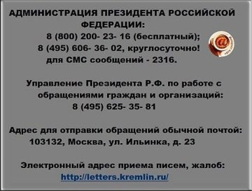 Эта мера не работает, уже пробовала, пересылают письмо местной администрации и действий за этим никаких не следует, одни отписки...Помогает всегда сайт Навального, там работа чётко налажена. Где-то на НТ ссылка на этот сайт есть. -http://roszkh.ru/
