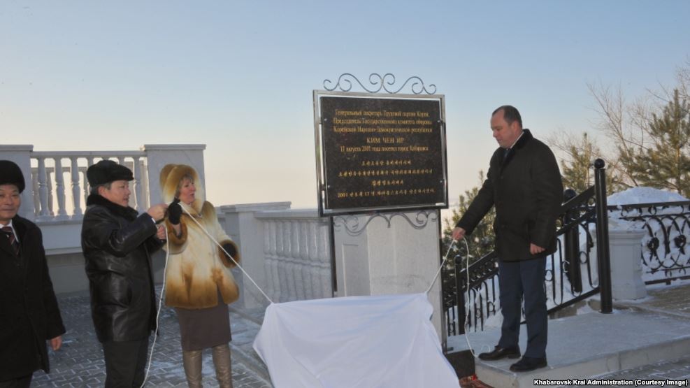 В ЦЕНТРЕ ХАБАРОВСКА УСТАНОВИЛИ ПАМЯТНУЮ ДОСКУ В ЧЕСТЬ КИМ ЧЕН ИРА. В центре Хабаровска установили мемориальную доску в честь Ким Чен Ира. На ней написано: "Генеральный секретарь Трудовой партии Кореи, председатель Государственного комитета обороны Корейской Народно-демократической республики Ким Чен Ир 11 августа 2011 года посетил город Хабаровск". Доска установлена в парке рядом с городской набережной, напротив памятника генерал-губернатору Восточной Сибири графу Муравьеву-Амурскому. Мемориальную доску открыли в торжественной обстановке – в церемонии приняли участие представители регионального правительства и руководитель Хабаровской канцелярии генерального консульства КНДР. "Сегодняшнее событие посвящено дружбе и сотрудничеству между Хабаровским краем и Корейской Народно-Демократической Республикой. Убежден, что наше дальнейшее взаимодействие будет укрепляться, наши братские народы всегда будут поддерживать друг друга, что поможет нам активно и успешно развивать двусторонние связи в самых различных областях", – заявил один из региональных чиновников, начальник главного управления протокола и международных связей губернатора и правительства Хабаровского края Вячеслав Дианов. Ким Чен Ир посетил Россию летом 2011 года. Он проехал на бронепоезде через несколько городов Дальнего Востока и Сибири и встретился в Улан-Удэ с тогдашним президентом России Дмитрием Медведевым. В декабре 2011 года Ким Чен Ир умер. Между тем историки и представители движения "Мемориал" в Хабаровске уже пять лет безуспешно пытаются добиться установки в центре города доски памяти погибшим во время сталинских репрессий. На одной из главных улиц Хабаровска находится здание, которое в 30-е годы прошлого столетия было тюрьмой НКВД. В ней были расстреляны тысячи людей. Однако власти региона проект так и не утвердили. Сначала говорилось, что формулировка, которую предлагает "Мемориал", слишком жесткая и негативно скажется на людях, которые работают в здании. Потом отказано было на основании того, что нет копий архивных документов, подтверждающих, что в тюрьме проходили массовые расстрелы. Газетные статьи, шесть томов показаний свидетелей и бывшего начальника этой тюрьмы, как выяснилось, официально архивными документами не считаются. источник: http://www.svoboda.org/a/26747087.html |