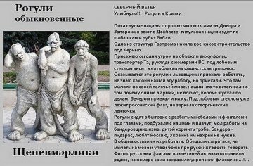 - Да. - Скажите, а правда, что можно официально откосить от призыва за две штуки баксов? - Правда. Платите в кассу и косите. - Ух ты! А сколько стоит покричать на Майдане: "Бандера – козёл!"? - Пятьсот долларов. Платите в кассу и кричите. - Ух ты!! А "Порошенко – мудак!"? - Триста долларов. - А "Ляшко – [мат]!"? - Это бесплатно. Что вы глупые вопросы задаёте? - Извините. Вообще-то меня зовут Моторола, и я бы хотел зачистить какой-нибудь штаб правосеков в Киеве, с публичным повешением Яроша. Но я понимаю, что это уже слишком… - Десять тысяч долларов в кассу и зачищайте. Верёвка и мыло пойдут как бонус. - Вы шутите?! - Гражданин, какие сейчас могут быть шутки? Родина в опасности. Ей срочно нужны деньги. Слава Украине! Кстати, принимаем и безнал. |