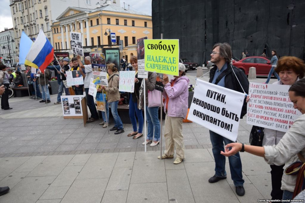 В Москве состоялся пикет против агрессии России на Украине. Москве, около станции метро Новокузнецкая состоялся пикет движения «Солидарность» против российской агрессии на Украине. Как пишет активист Денис Стяжкин в "Живой журнале", акция прошла спокойно. Пикет охраняли усиленные наряды полиции. Полиция же запретила стоять с плакатами более 15-м людям одновременно. источник: http://www.svoboda.org/content/article/27123551.html |