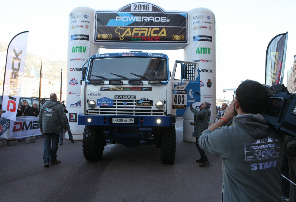 Участники ралли-марафона «Африка Эко Рейс 2016» в Монако прошли все необходимые проверки техники и начинают борьбу. Первый боевой день – 29 декабря – небольшой спецучасток длиной 100 км с трассой из гравия и твердого грунта. В зачете грузовиков фаворитами ралли-рейда будут экипажи Антона Шибалова (№400) и Сергея Куприянова (№403) команды «КАМАЗ-Мастер».