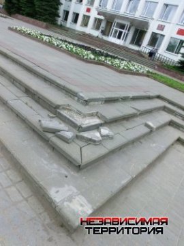 правда, применительно к нашим обстоятельствам - перефразируем булгаковское ("разруха не в клозетах, а - в головах") в: разруха не в клозетах, а у глав администраций (причём у всех четырёх сразу), ибо прямо под их окнами и в 10 шагах от входа в административное здание имеем разруху, ох каку разруху: |