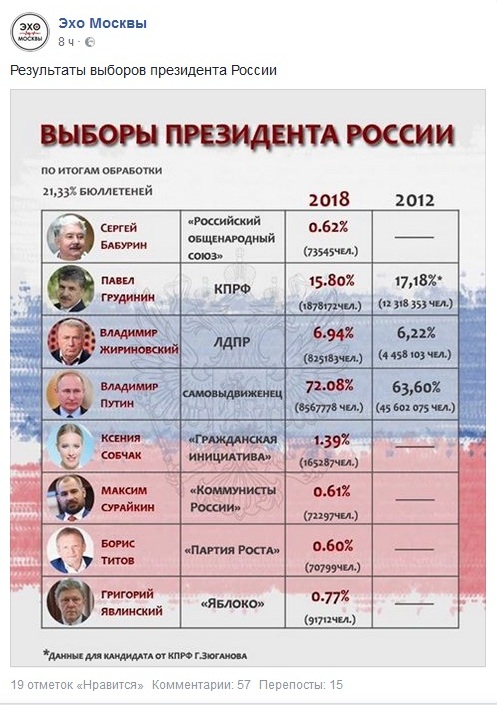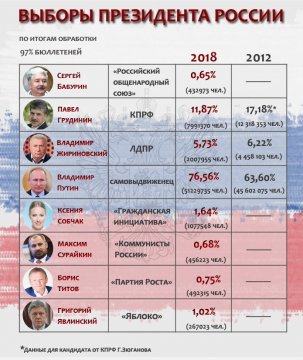 | Результаты выборов президента России | raport | Выборы | 68 | 19.03.2013 08:56 |