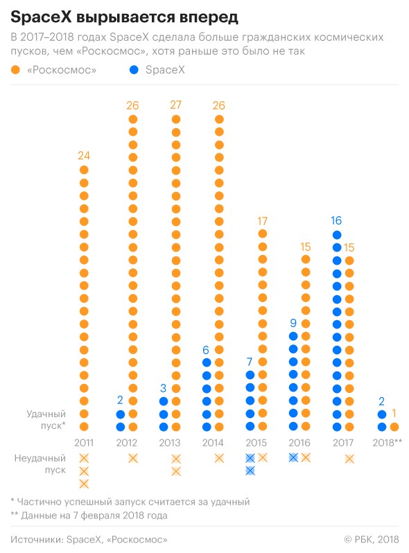 Захватывающая трансляция космического полёта автомобиля Илона Маска Tesla Roadster в режиме он-лайн. Добавлено через 16 минут 23 секунды . Частная компания Илона Маска делает больше гражданских космических пусков чем весь "Роскосмос". К тому же возможности доставки грузов с помощью Spase X стали больше и дешевле. Вывести тонну груза на Falcon Heavy в два раза дешевле, чем на российском «Протоне» и почти в три раза дешевле, чем на «Ангаре-А5» — $1,4 млн против $2,8 млн и $3,9 млн соответственно. Для человечества - прорыв, но за Россию как-то обидно. Подробнее на РБК: https://www.rbc.ru/technology_and_me...from=center_18 |