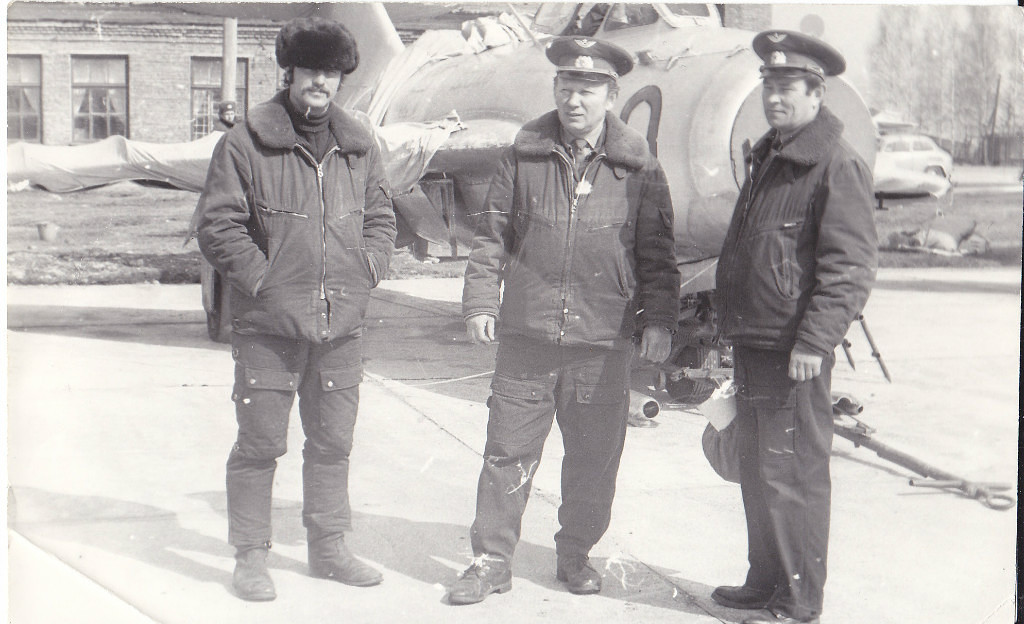 Первый раз МИ-24 появились на нашем аэродроме. На нижнем фото, слева лётчик-инструктор Погребняк Н., в центре - зам. нач. по лётной подготовке Карклин В. |