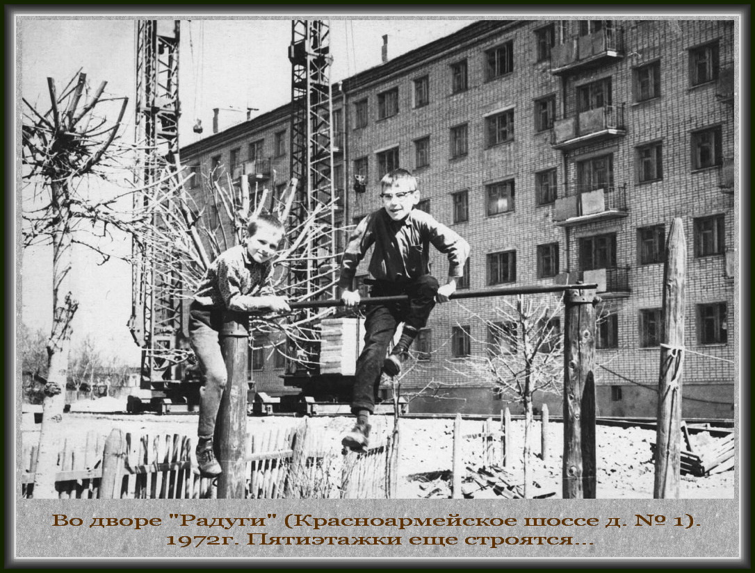 Ratnik,спасибо за фотографии. Долго рассматривала фото Красноармейского шоссе. Похоже,это Радуга? Так и не нашла тротуара... А нет ли у кого фотографий детской горки по ул. Баумана? На её месте построен детский сад. А в начале 70-х зимой была отличнейшая горка.