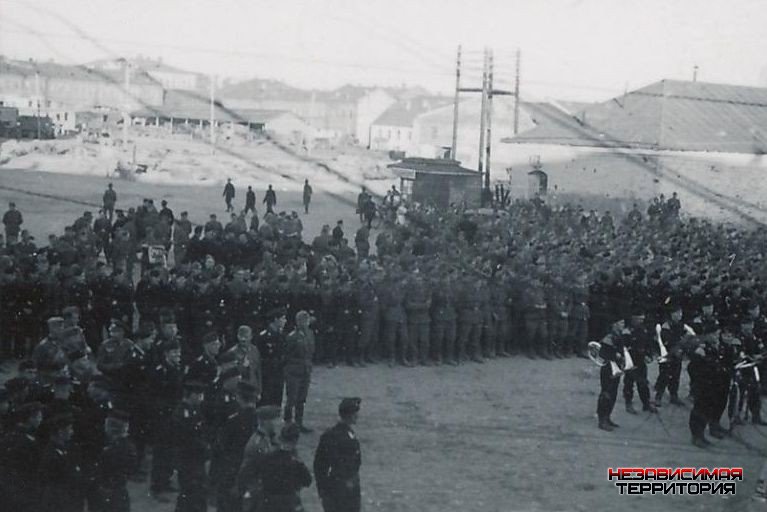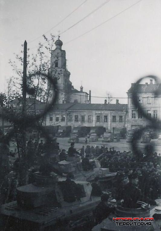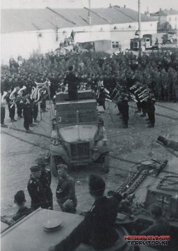 На бескрайних просторах Инета случайно попались несколько фото времен войны. При ближайшем рассмотрении рассмотрел, на них город Вязьма, точнее главная площадь города - Советская. На ней проходит типа митинга немецких войск и выставлены немецкие средние танки Pz.Kpfw.III., Предположительно действо происходит весной 1942 г. по случаю отправки на фронт. В нашем городе про такой случай не слышали (или только я) и немудрено, тк видно оцепление площади и местных туда близко не допускали.