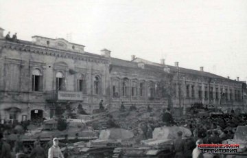 Интересно что колокольня на Троицком соборе еще цела, значит это наши ври освобождении ее расстреляли.