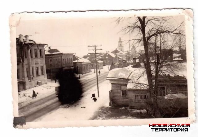 Это фото 1942 года, в то время рынка там, между 1-майской и Ленина не было. Во время войны и сразу после неё рынок был на площади на месте нынешнего "Магнита", что на Ефремова. Улицы Космонавтов, как таковой не было, а во дворе нынешнего "Эльдорадо", от рыночной площади к "Советской" шла улица Красная, отсаткикоторой сейчас обозначены направлениями во дворах...