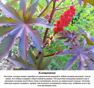 Ого, ничего себе, у наших соседей по дачи такого добра, как клещевина предостаточно, но они его как-то мило называют ,что-то типа радужное дерево ,а оно оказывается в списке самых ядовитых растений