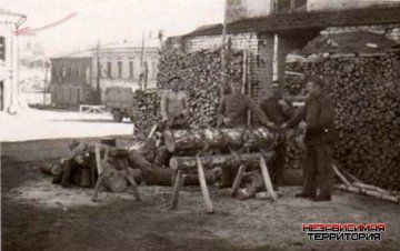 Оно, здание, точнее, то, что было до него, выглядывает частично слева из-за поленницы на снимке с "дровосеками"... Там же, левее этого здания, и старая "Скорая помощь" (60-70 годы) в двухэтажном здании красного кирпича...