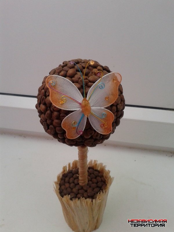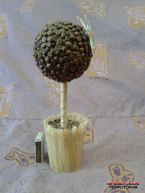 чуть больше, чем полгода и чуть меньше, чем год мучений....М-дя, никогда больше не буду делать кофейные дерева...Во всяком случае ТАКОГО размера...сидишь такая: зёрна в клее, стол в клее, сама в клее и держишь одно маааааленькое кофейное зёрнышко.