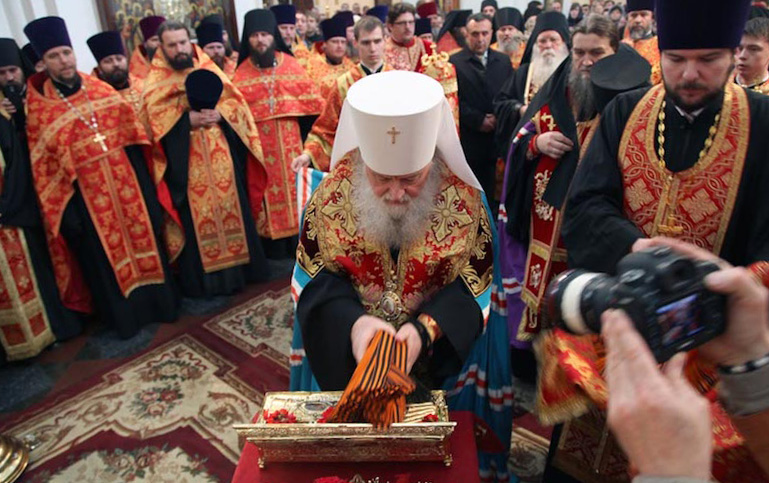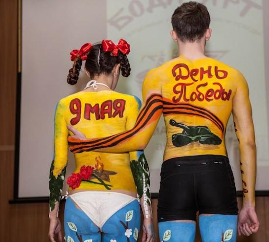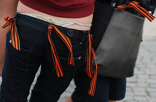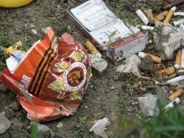 Вместо наклеек и ленточек лучше бы похоронили солдат, коих сотни тысяч валяется вокруг Вязьмы. А то имитация непонятно чего.