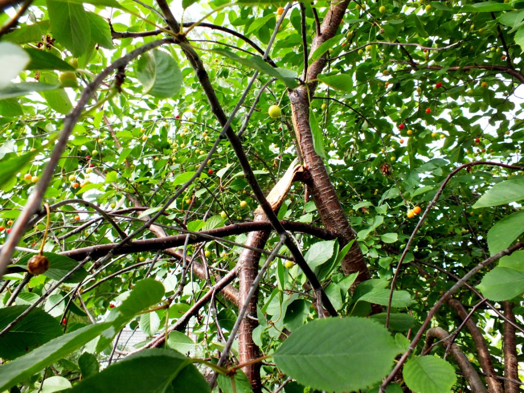 Добавлено через 16 минут 14 секунд Еще могу огородом похвалиться хотя растет все не очень. Есть ягоды кое какие, вот клубничка, крыжовник , черешня. Из томатов порадовал только сорт БЛАГОВЕСТ , кисти большие и закладываются с низкого яруса. А такая хрень как РУССКИЙ РАЗМЕР и РОЗОВЫЙ ГИГАНТ вообще не впечатлили, что то им у меня не нравится. А это жертва урагана, сортовая вишня ШОКОЛАДНИЦА только в самое плодоношение вошла и на тебе. |
